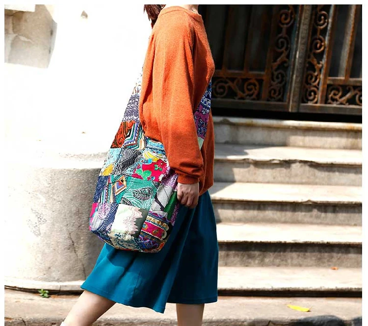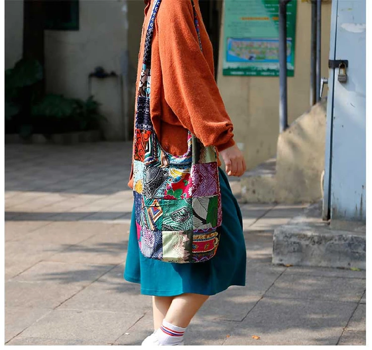 Carry your essentials with free-spirited style. Our unique patchwork bag adds a touch of vintage charm.